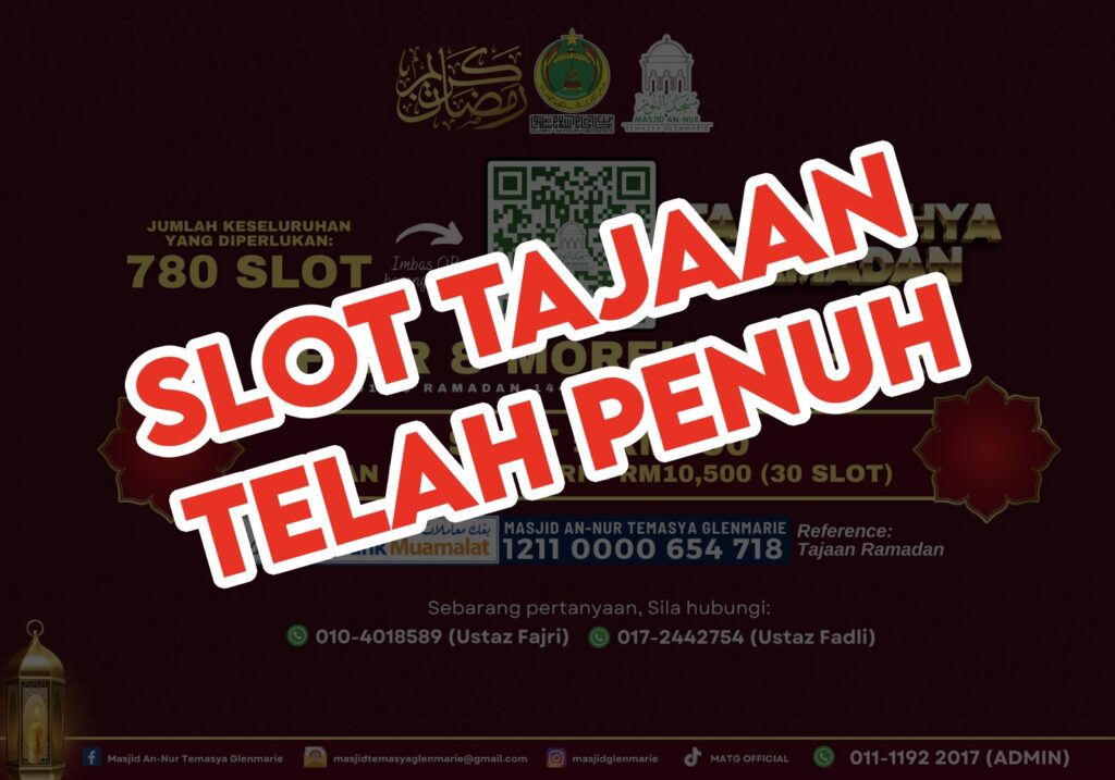Ayuh muslimin & muslimat sekalian sama-sama kita merebut membuat kebaikan dengan menyertai Program Jom Infaq Tajaan Ihya’ Ramadhan di Masjid An-Nur Temasya Glenmarie .